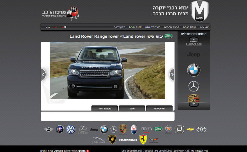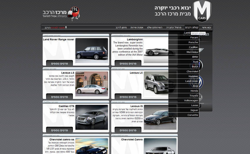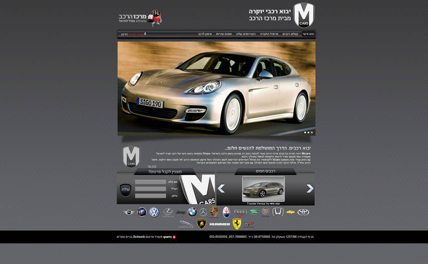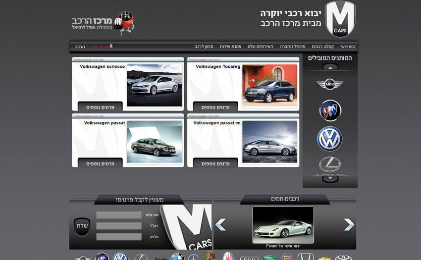 בניית אתר אינטרנט הכולל קטלוג מוצרים עבור Mcars המתמחה ביבוא אישי של רכבי יוקרה לישראל ומעמידה צוות מקצועי נפרד לרשות הלקוחות לטיפול בתהליך היבוא.