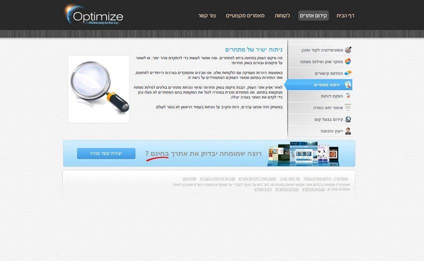 הערכת מצב מדויקת לגבי התאמת אתרכם לקידום, ביקורת וייעוץ לגבי פעולות שנעשו לקידום האתר על ידיכם או על ידי חברת קידום אתרים
